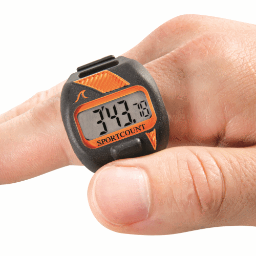 Slide the SportCount onto your finger like a ring. It’s ultra-light and water-resistant, so you’ll forget it’s even there.