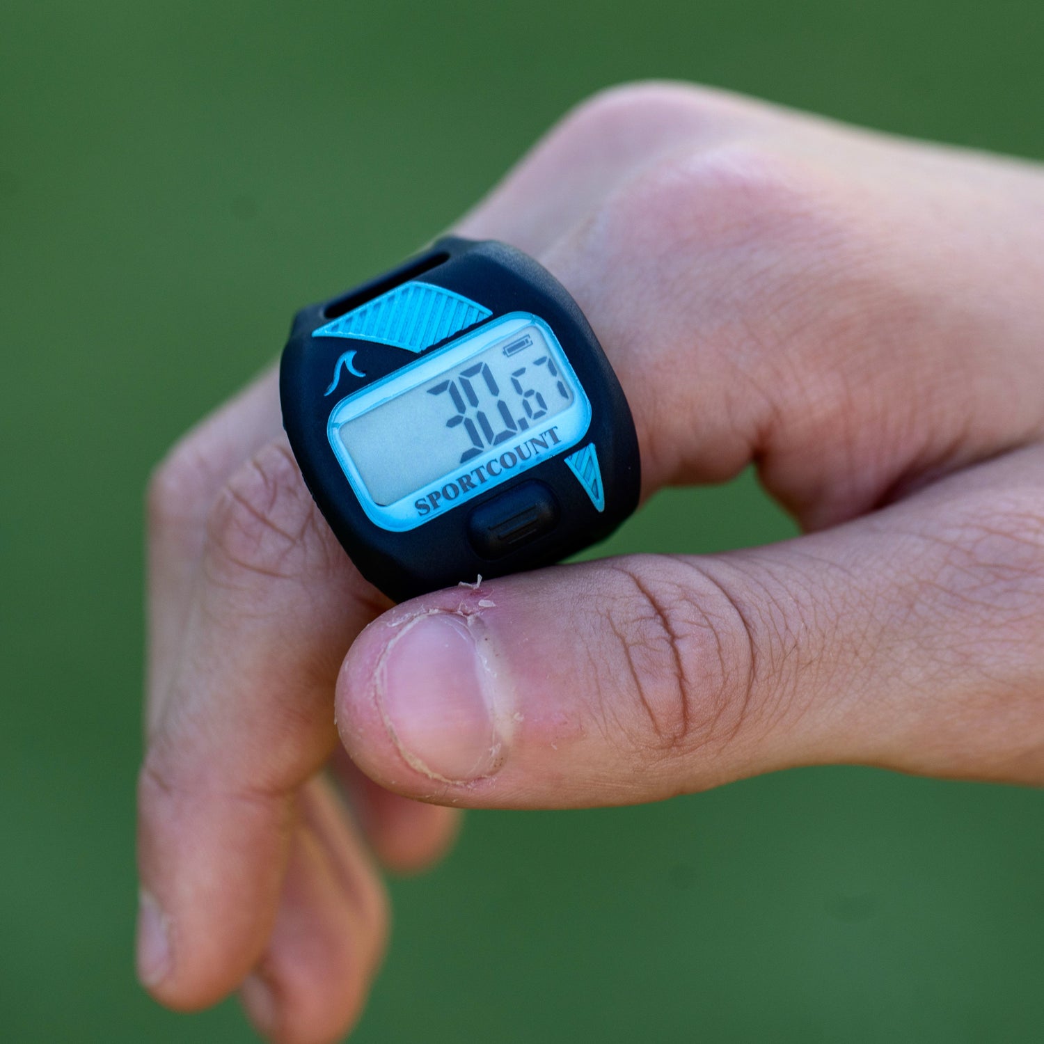 Slide the SportCount onto your finger like a ring. It’s ultra-light and water-resistant, so you’ll forget it’s even there.
